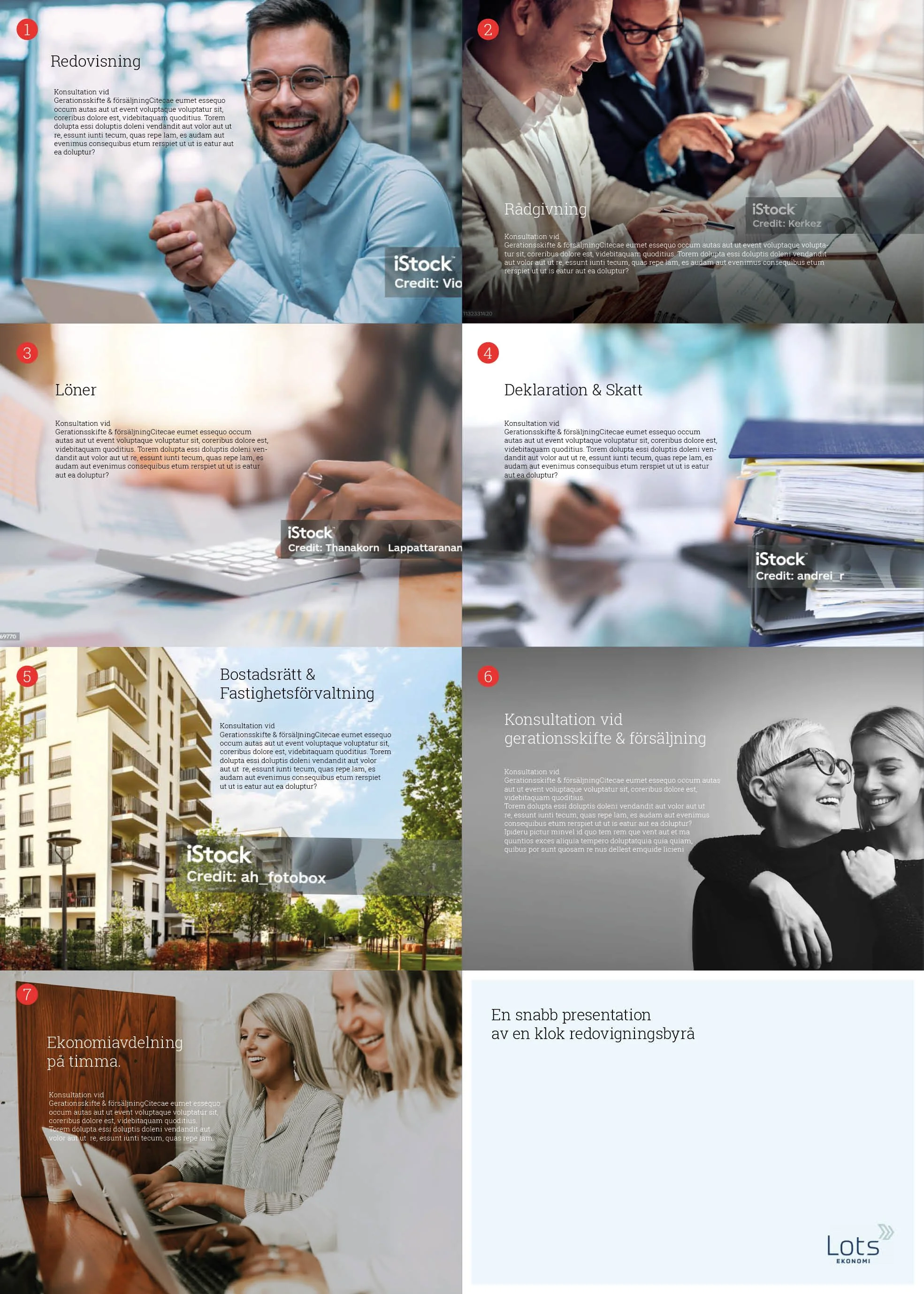 Detta är en snabb presentation av Lots som företag och vilka huvudområden ni jobbar inom. Huvudsyftet med denna är att mottagare lägger er på minnet och att ni upplevs som en mellanstor spelare men kompetens som vågar tänka lite mer personligt och egna i ert utryck.